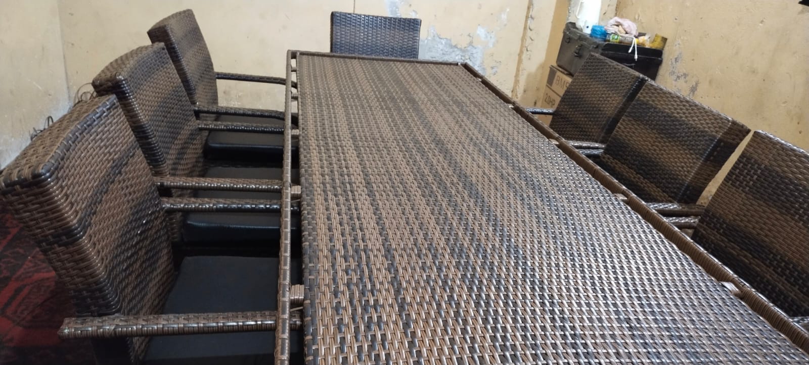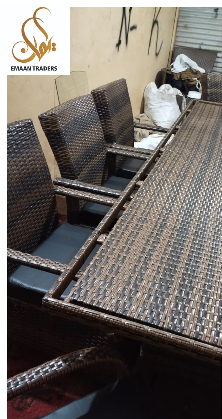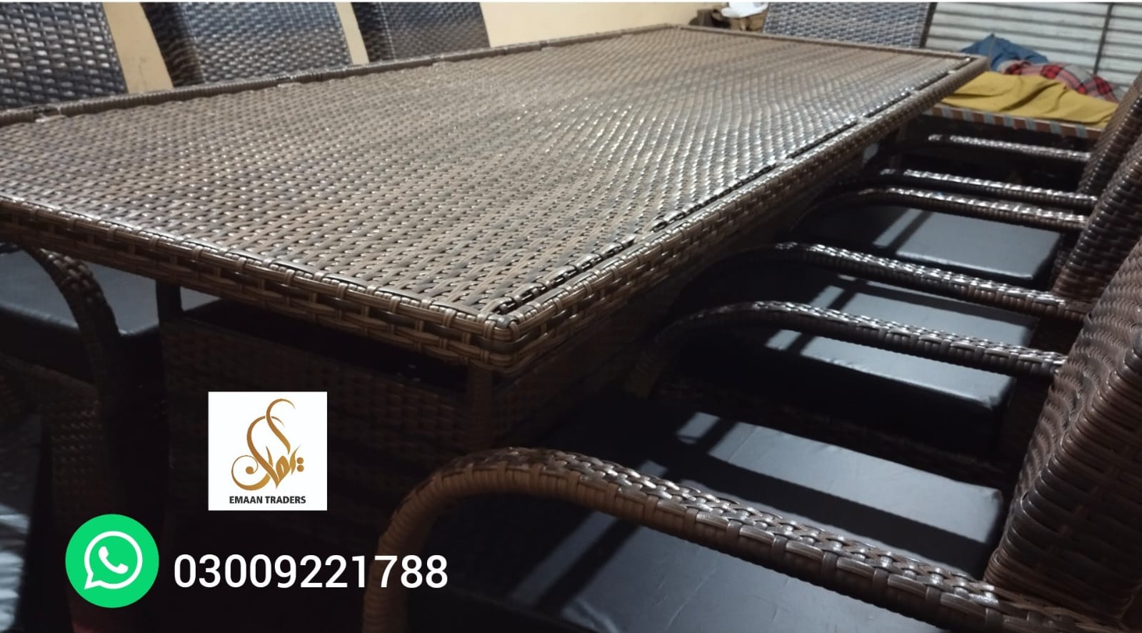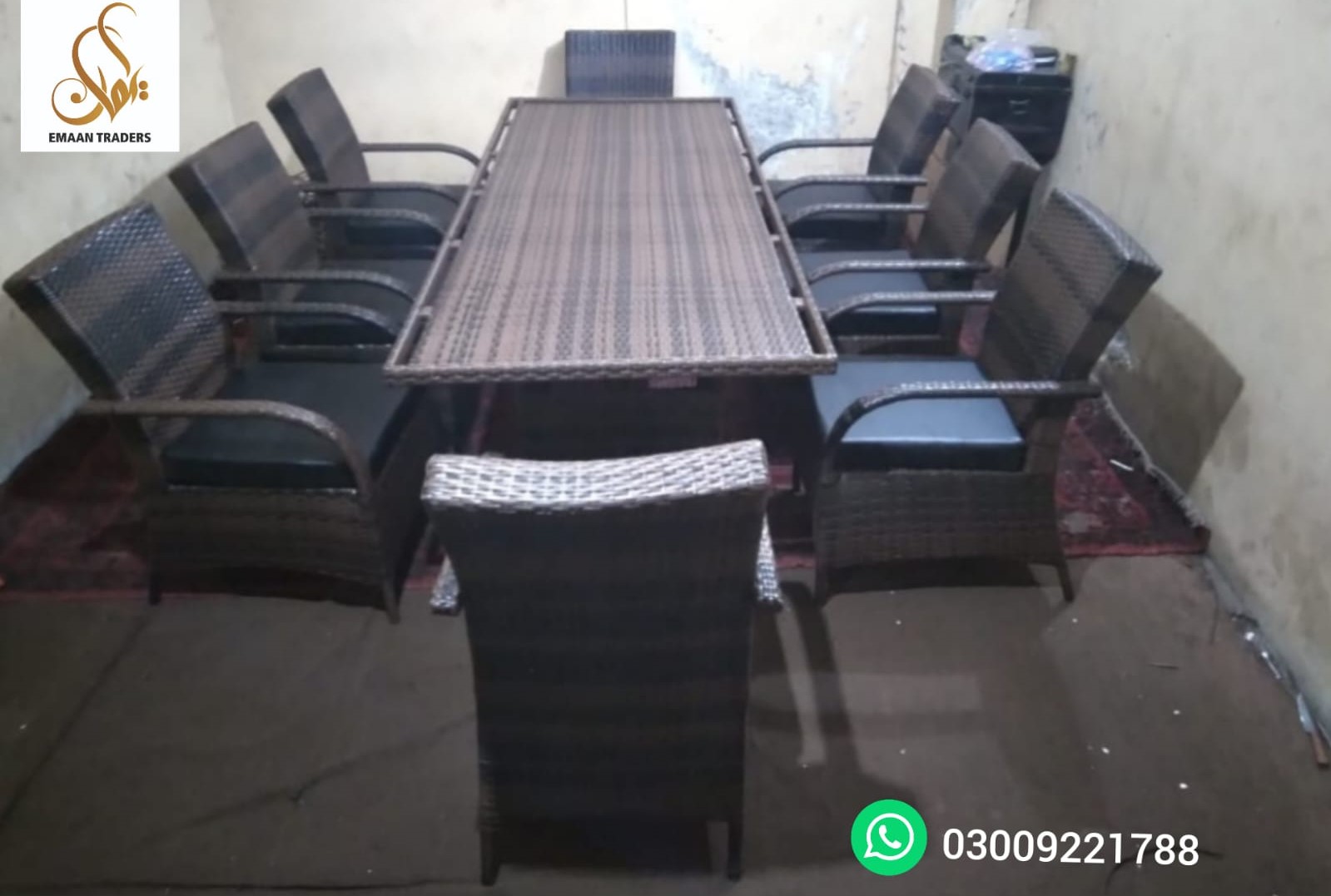 It has 8 relaxing chairs with premium quality parachute fabric cushions with table size 36 × 72″ with 8mm glass.