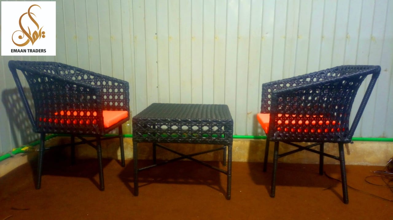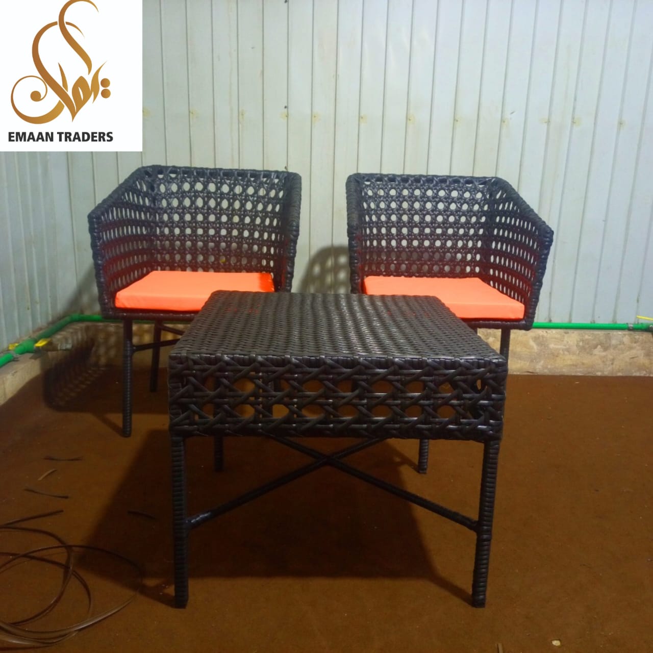 It’s having 2 chairs with premium quality fabric cushions and one table size 24×24″ with 8mm glass.