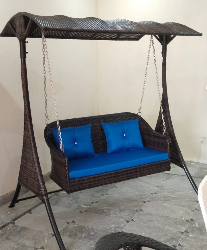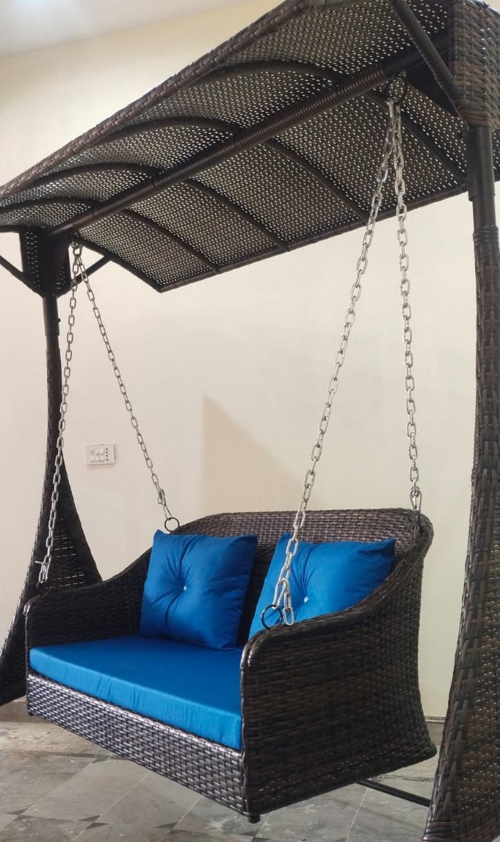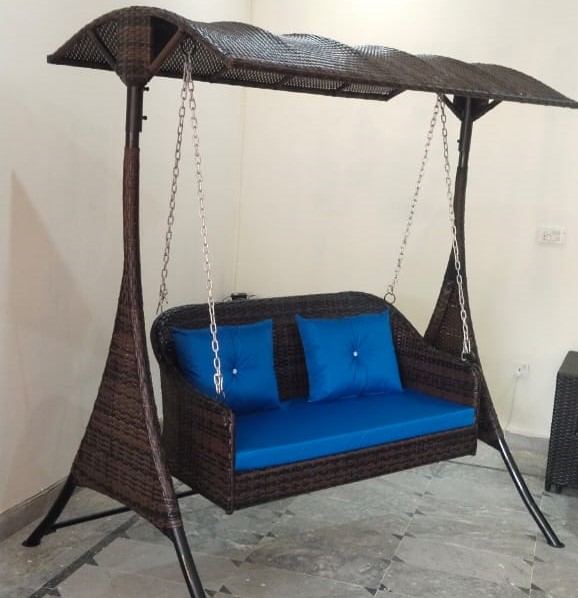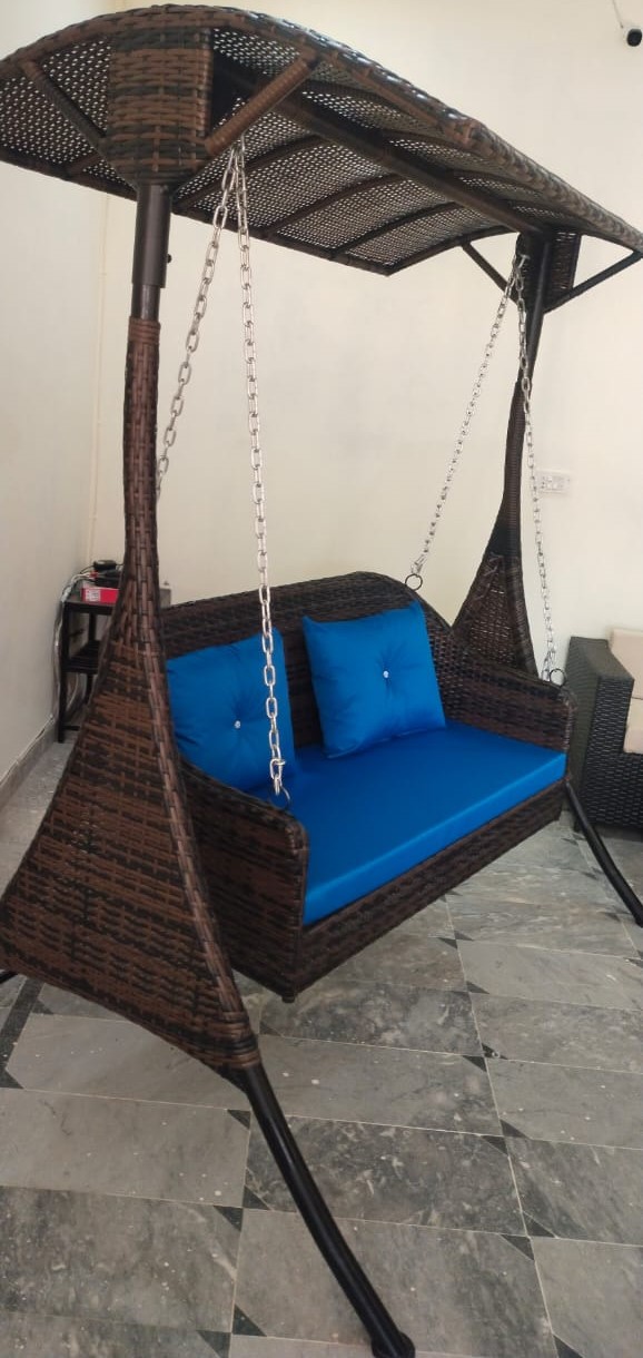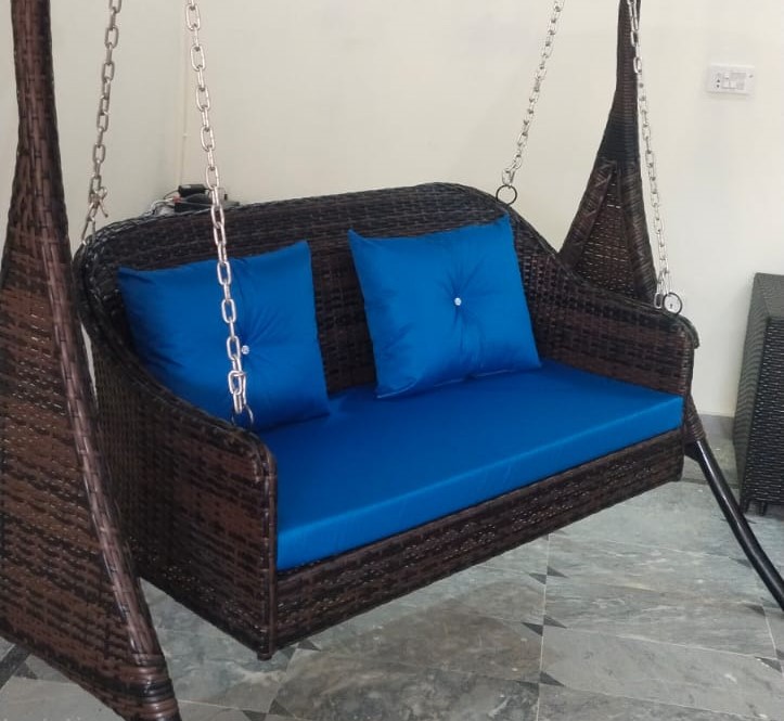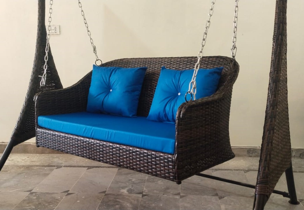 It’s a two seater swing in powdered coated heavy frames with premium quality fabric cushions size is width is 78″ height 84″ seat size is 22″×50″