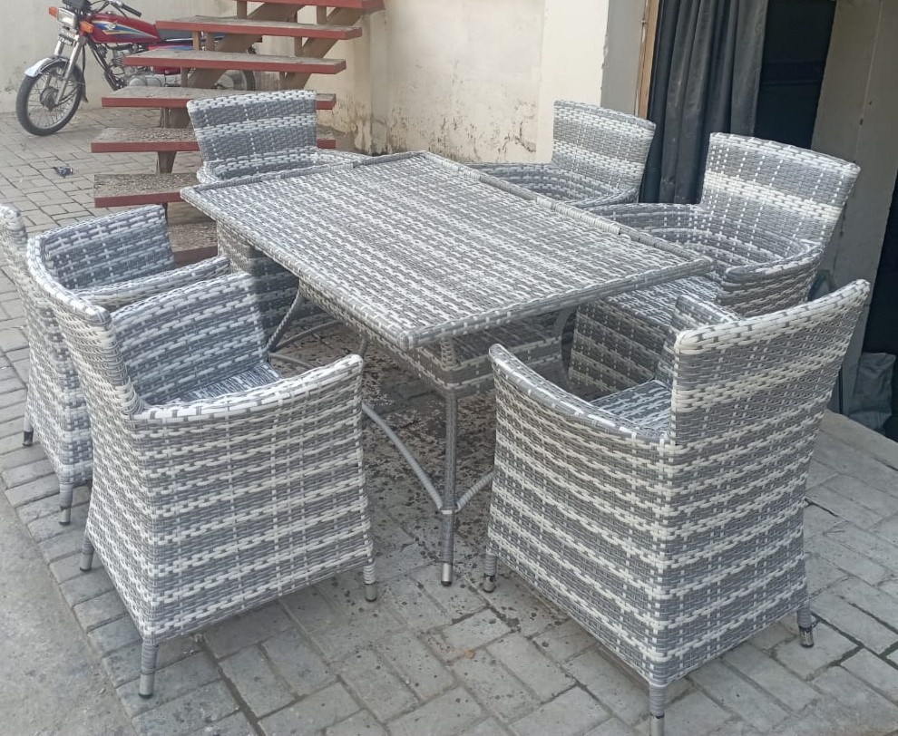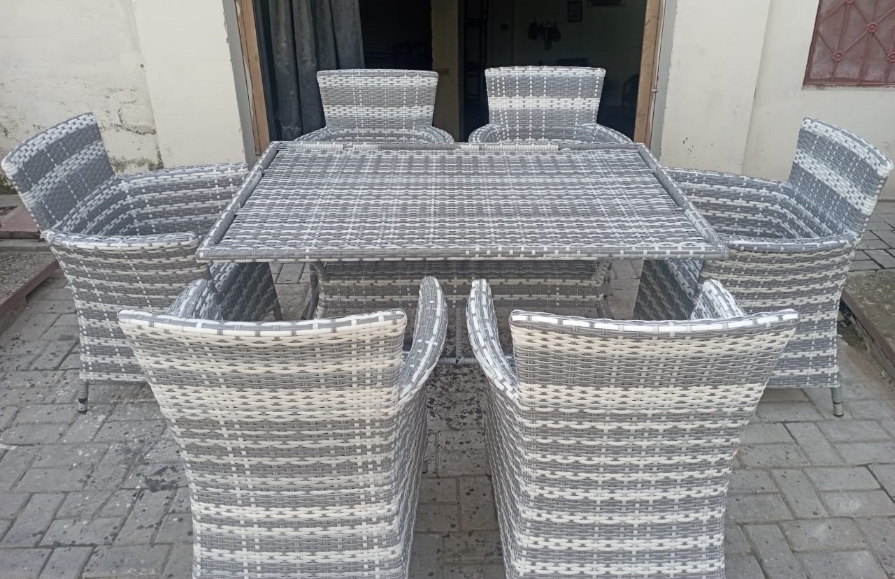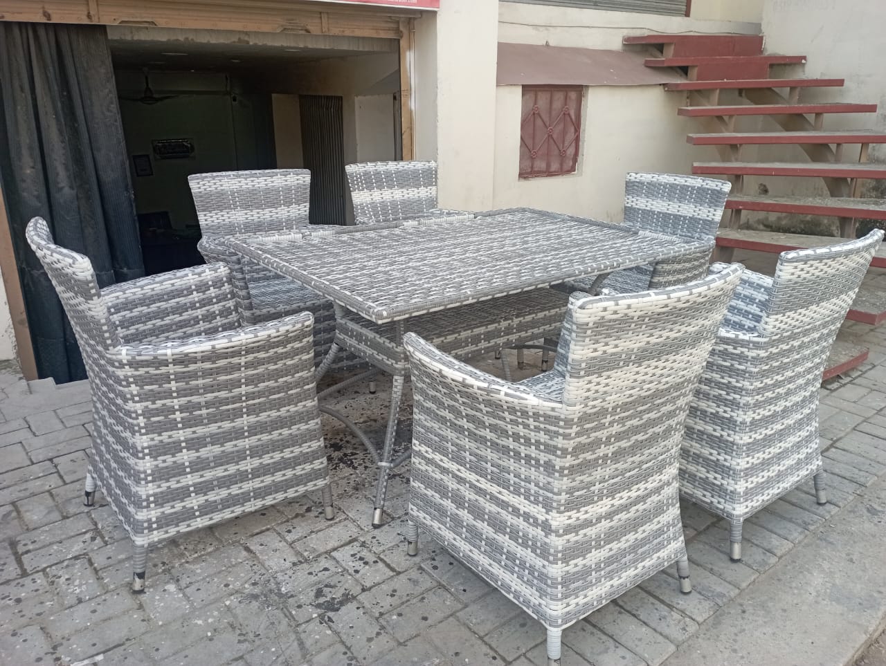 It has 6 chairs with premium quality fabric cushions and one table size 36×54″ with 8mm glass.